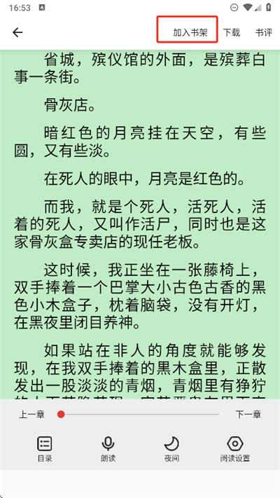4、如果后续想要继续观看这本小说并快速的查看,在菜单栏的右上角处点击加入书架;