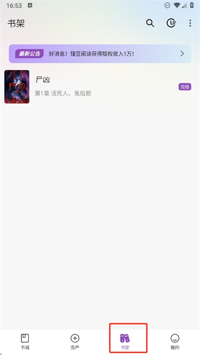 5、然后我们返回到首页就可以看到书架功能,进入书架后就可以看到历史的阅读记录并继续观看。