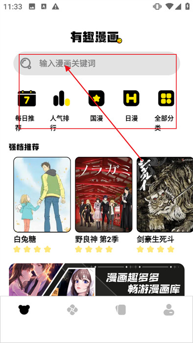 在首页上的搜索框内查找关键词,可以在短时间内找到相应的漫画资源,并查看最新书本资讯;