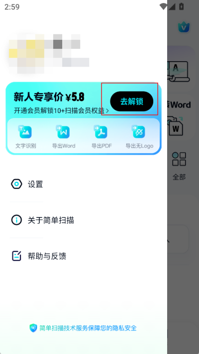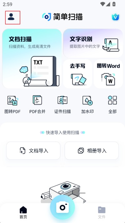 1、首先打开下载好的简单扫描APP,进入软件后点击左上角的个人信息按钮;