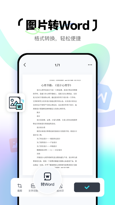 2、便捷的图片转word功能,可以将图片中的内容识别,识别后可以将拍摄的文字转化为Word。