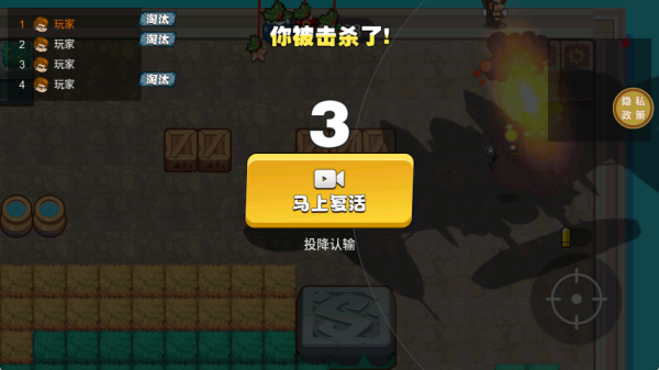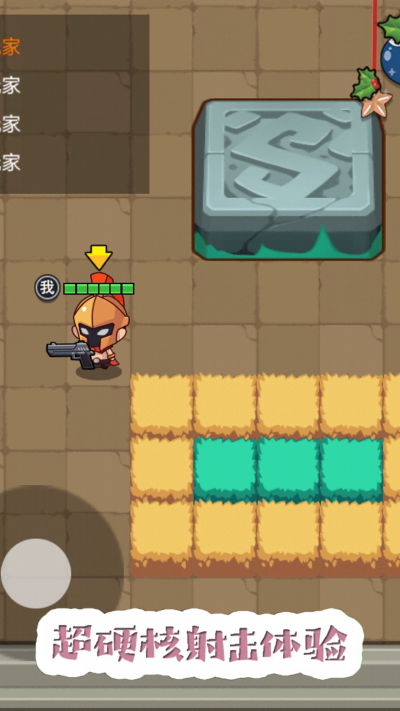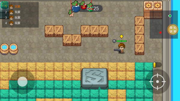 游戏的操作比较简单,左侧的轮盘操控角色的移动,右侧的攻击按键发射子弹,将敌人淘汰。