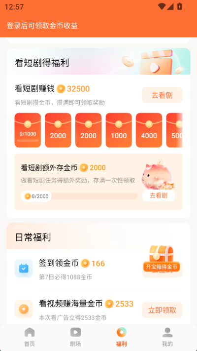 每天在软件中看短剧即刻有机会获得红包奖励,超多的金币红包等你解锁,做看剧任务还可以获得额外的金币奖励;