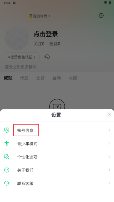 3、点击后会在下方的位置弹出相应的功能选项,点击【账号信息】选项;