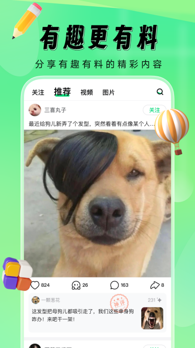 聚集各种段子手、奇葩、键盘侠、吐槽员、神评师,人才应有尽有,让你笑出腹肌;各种幽默的图片视频,绝对很精彩;