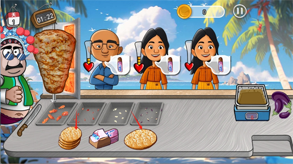 游戏中,模拟制作番茄配料、洋葱、卷饼、炸土豆丝等操作过程,给玩家一个真实的体验,用微波炉等开始你的经营,面对不同口味的顾客,满足他们的要求,一步步扩大可经营规模,解锁更多的品类。同时,游戏中还加入了全新的音效设定,伴随着悠扬的音乐开始经营!