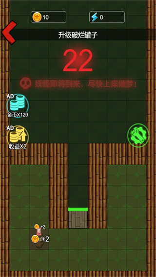 只要躺平了就会有源源不断的金币来帮助你进行升级,打造强有力的房间防御,抵抗好妖怪们。