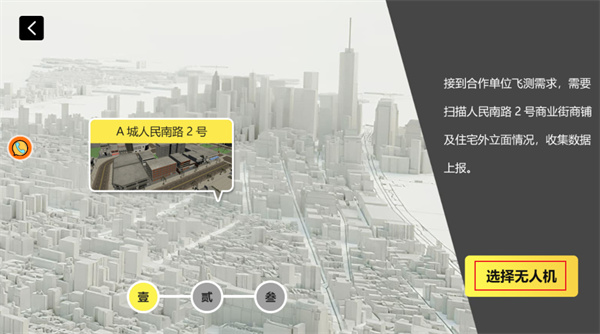 3、第一个任务为“接到合作单位非测需求,需要扫描人民南路2号商业街商铺及住宅外立面情况,收集数据上报”;