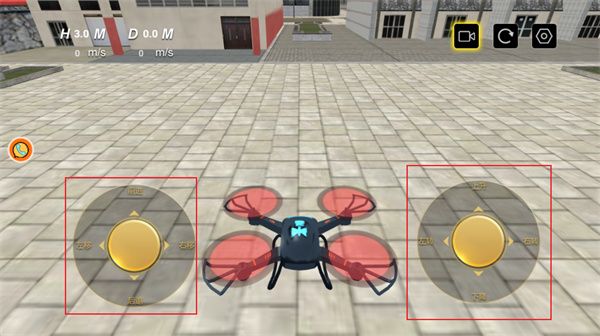 5、左侧的虚拟轮盘控制前进、后退、左转、右转等,右侧的虚拟轮盘则是控制上升、下降、左转、右转等;