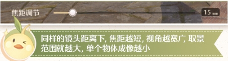 目前默认进入拍照内焦距为15mm,游戏内玩家可自主调节参数范围为10~55mm