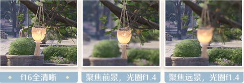 目前默认进入拍照内光圈为f16(全清晰效果),光圈可调节范围为f1.2~16