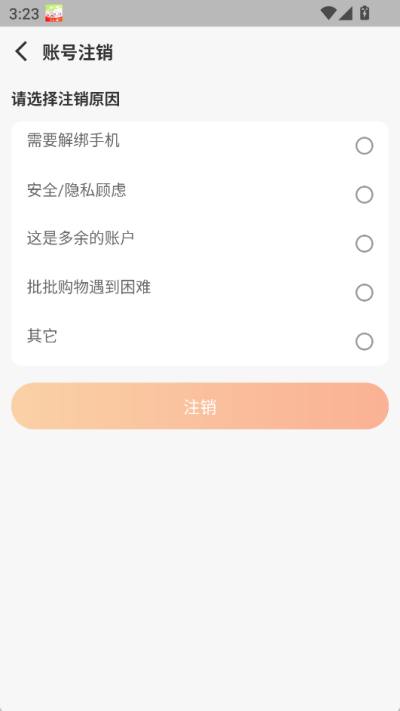 6、然后随便选择一个注销原因,点击【注销】选项即可成功将账号注销。