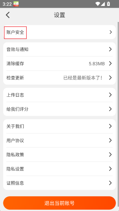 3、点击后进入设置功能界面,在这里找到【账户安全】选项点击;