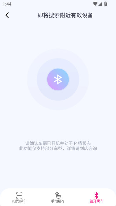 5、同样支持蓝牙绑车服务,先将电动车开机并处于P档状态,然后打开手机蓝牙扫描电动车设备,扫描到后点击绑定即可。