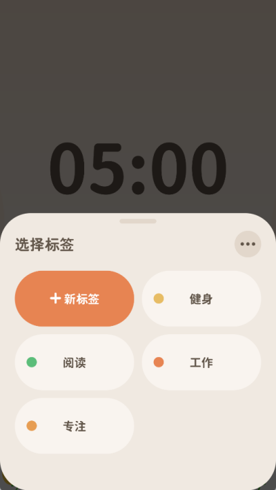 4、在这里可以选择添加相应的专注标签,默认的有健身、阅读、工作和专注选项,用户也可以自己添加新标签;