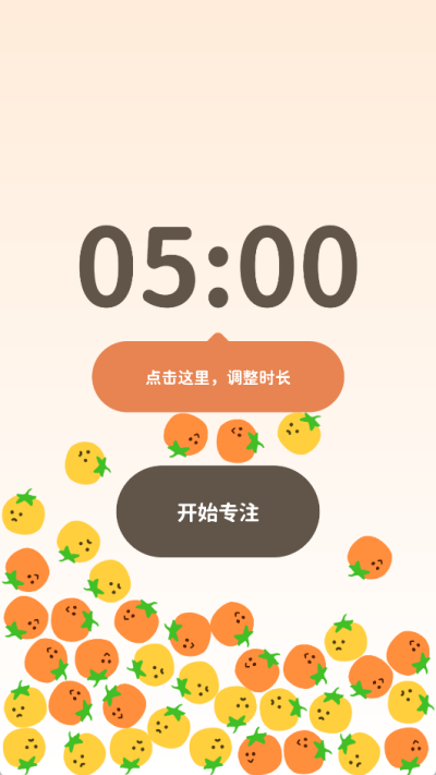1、首先打开下载好的极简番茄钟app,进入软件后点击上方的时间,可以调整专注时长;