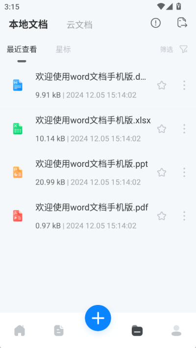 word文档手机版是一款支持在手机上进行文档制作和处理的软件,在里面可以自由创建word文档、Excel表格以及幻灯片文档等,带来全套的office文档功能,支持导入本地文件和内容,带来更加简单放松的操作服务,同时兼容更多的功能和服务内容。