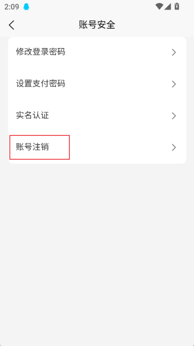 4、在账号安全功能界面即可看到【账号注销】的服务选项,点击即可将该账号进行注销。