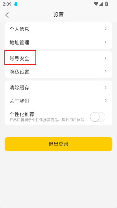 3、进入设置功能界面后,点击其中的【账号安全】选项;
