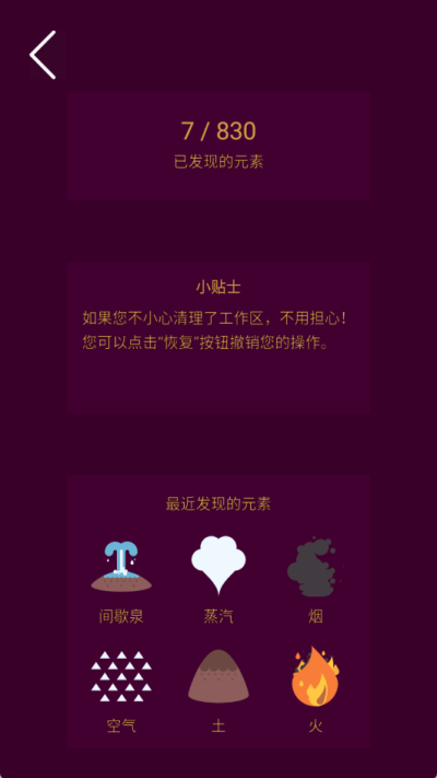 通过放置合成的方式获得新的元素,在里面拥有830种全新的元素等待你去发现。