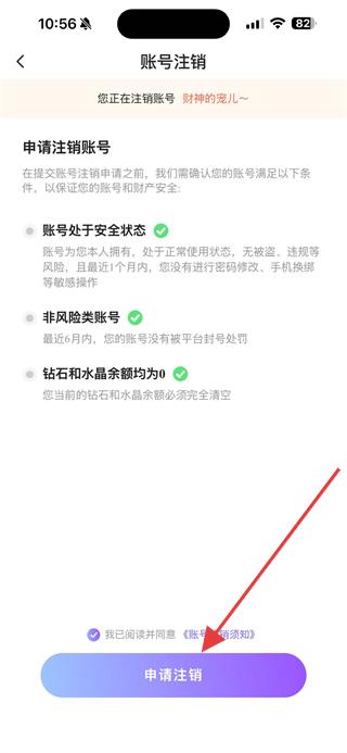 4、确认账号满足安全状态、非风险类账号、钻石和水晶余额均为0的条件后,点击申请注销,即可完成VV星球账号的注销。