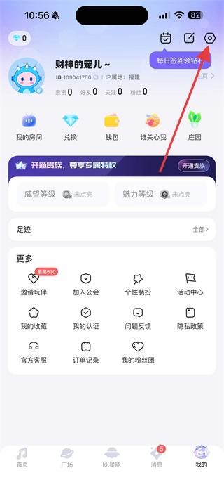 2、在个人页面中点击右上角设置图标,进入设置页面。