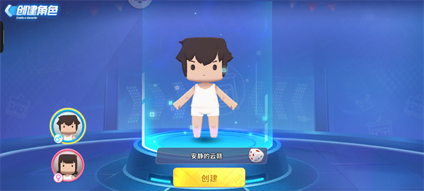 2、登录成功后进入角色创建界面,在这里可以选择角色的性别以及输入角色昵称;
