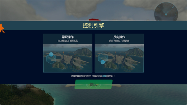 1、首先打开天空战士游戏,进入游戏后选择自己的控制引擎,可以从常规操作和反向操作两种操作模式种二选一;