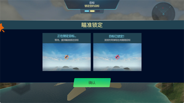 4、玩家可以与敌方战机展开对战,当你的瞄准镜中准心显示黄色说明锁定目标,变成红色后则表示锁定;