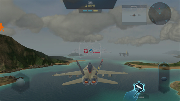 5、当玩家的飞机锁定目标后点击发射导弹的按钮,即可发射导弹将对方飞机击落;