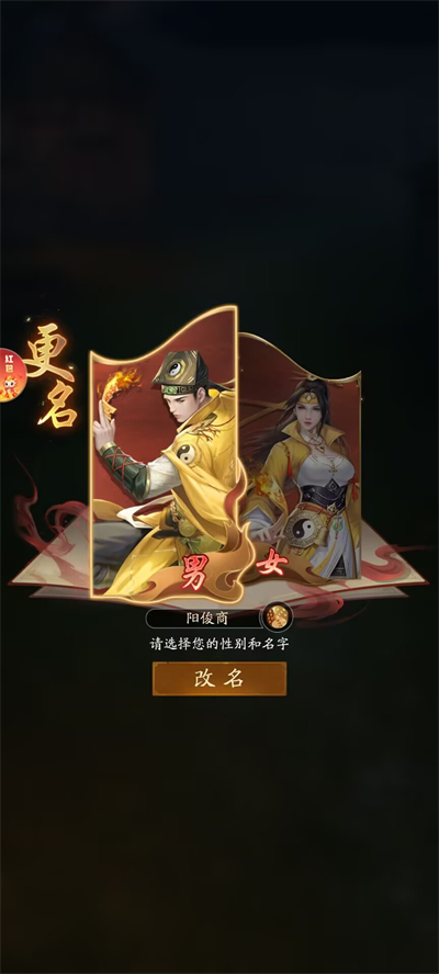 2、登录成功选择自己的角色性别以及昵称,选择完成后开启踏上征程;