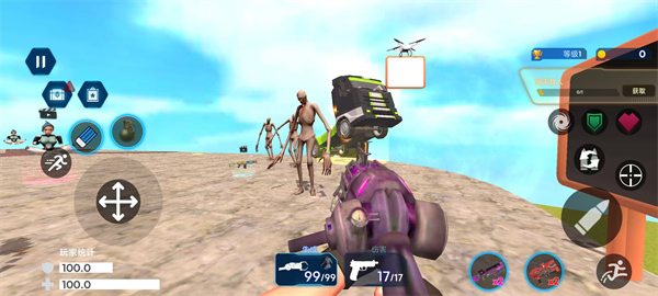 来到游戏中看到漂浮在空中各种敌人还有卡车等一众物品,领取任务将眼前的怪物击杀收获任务奖励。