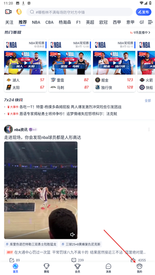 1、打开腾讯体育APP,进入时点击上方NBA的标签。