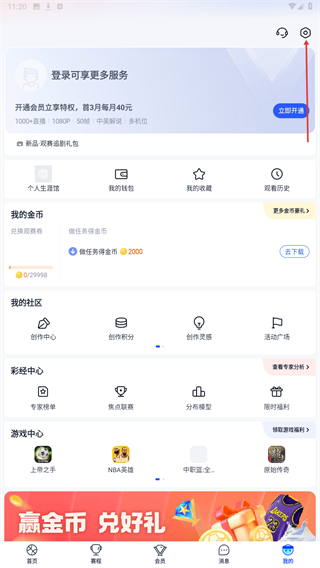 1、打开腾讯体育APP,点击底部导航栏的我的功能图标,进入到个人中心页面。