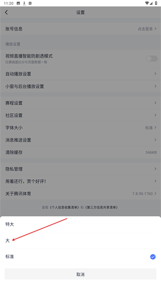 4、在弹出的字体选项里,选择大的目标尺寸即可。