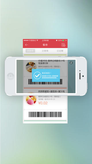 商户快扫为餐券联盟商户提供的消费验证的工具,能够从手机端验证条码,以便商户能够实现快速条码验证。