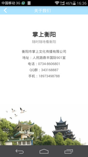 掌上衡阳(www.hy58.cc)是衡阳市掌上文化传播有限公司为满足越来越多的衡阳市民通过手机上网了解各类信息的需求,倾情打造的一个本地文化资讯互动平台。掌上衡阳积极整合了本地资讯、生活服务、休闲娱乐、掌上论坛等方面内容,是衡阳市首家移动互联网门户。 掌上衡阳整合了多个本地报刊网站的资讯,发布包括衡阳美食、汽车房产在内等十多个行业的商业信息,同时为手机用户提供在线交流平台。未来我们会根据用户的需要不断进行开发改进,使之成为广大移动用户的生活助手。最及时的衡阳资讯、最便捷的生活服务讯息、人气最旺的衡阳移动论坛,一切尽在“掌上衡阳”!
