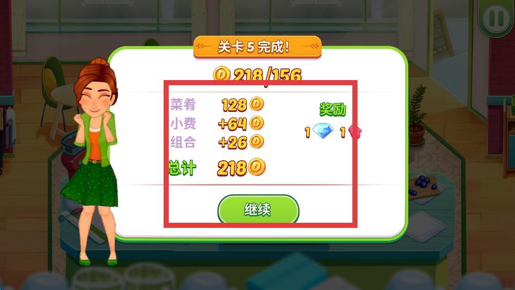 3、成功为顾客提供菜肴后,会获得金币奖励,还可能获得小费。