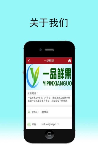 一品鲜果APP手机门户平台是由掌商工程技术研发的一站式整合服务平台,里面包含了公司简介,产品中心,栏目资讯,留言中心,个人中心等多方面的内容,让你更方便快捷的找到自己的需求,欢迎各位下载使用。