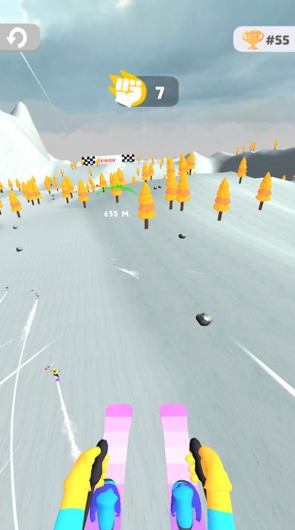 2、多人在线竞赛:与其他玩家进行紧张刺激的滑雪对决。