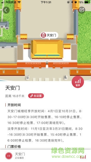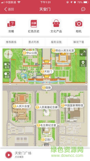 go天安门app是为想去北京天安门旅游的朋友们提供的一款导游服务软件,这里面包含了天安门及其周边的各个景点的详细介绍,还能为你标明出行走路线,让你不会错过任何一个有观赏意义的景点,有需要的朋友就请登陆绿色资源网下载使用吧!