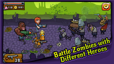 3、收集元素:收集从僵尸身上掉落的金币和生命值恢复道具,可以解锁强力武器和忠诚的伙伴。