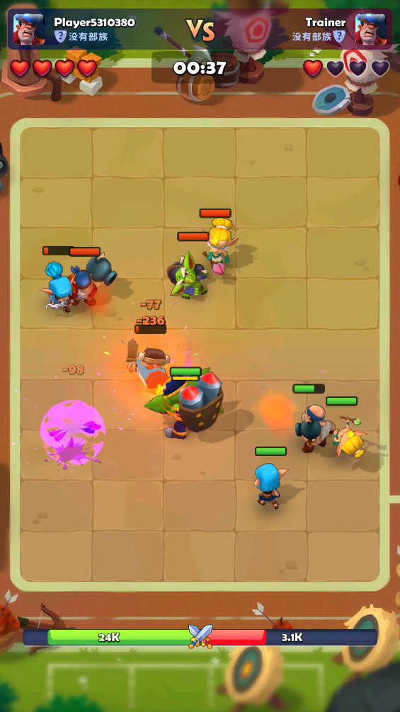 1、招募与进阶:玩家在游戏中可以通过金币招募新英雄,组建自己的队伍。同时,利用获取的资源对角色进行升级和进阶,提升实力。合理的资源管理和角色搭配将帮助你在对战中占据优势,获取更多胜利。