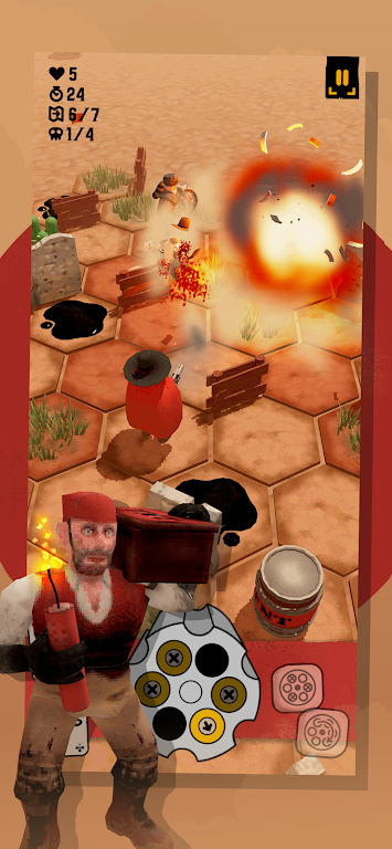 2、精准射击:通过移动、射击和卸载子弹,影响左轮手枪的旋转,实现精准定位射击。