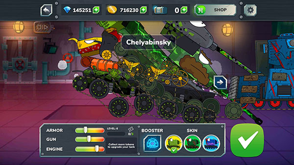 1、选择和升级坦克:玩家在进入游戏后,可以先选择一辆初始坦克,通过自己的努力赢取金币和经验,不断升级坦克的武器、速度和防御能力。增强坦克属性后,战斗中的生存能力将显著提高。