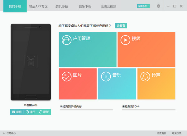 暴风简助手电脑版是由暴风官方打造的一款安卓手机管理软件,让每位用户轻松发现身边的优质应用,随时随地管理自己手机的照片,视频,音乐等,随时随地想看就看。暴风简助手并有专业小编定期为用户精心挑选最优质的安卓应用,所有内容均经过人工严格筛选,确保应用绿色、优质、安全,让你轻松玩转安卓手机,欢迎下载使用。