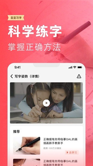 豆豆习字app是专门给儿童提供练习字体的软件,里面有非常正确的握笔姿势,还有科学的练字方法,让您能够学习写字姿势,然后进行随堂练习,加深您的印象,里面还有名师教学,非常的方便,要练字的小朋友们快来下载试试吧。