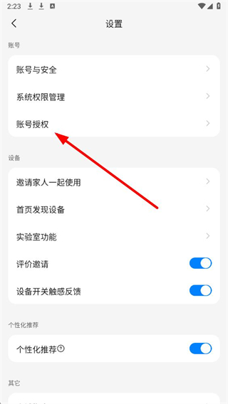 2、在设置页面中,找到账号授权选项并点击,进入账号授权的相关界面。
