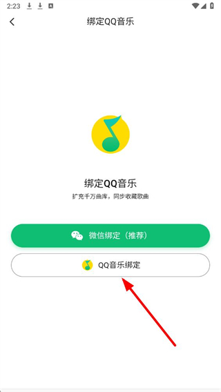 4、在绑定QQ音乐页面中,点击QQ音乐绑定按钮,按提示完成QQ音乐账号的绑定操作。