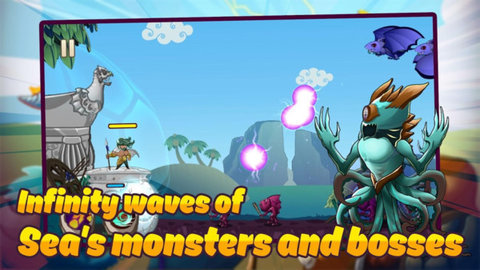 2、成为英雄:击败所有敌人,化身为波塞冬神,与无尽的怪物角斗。